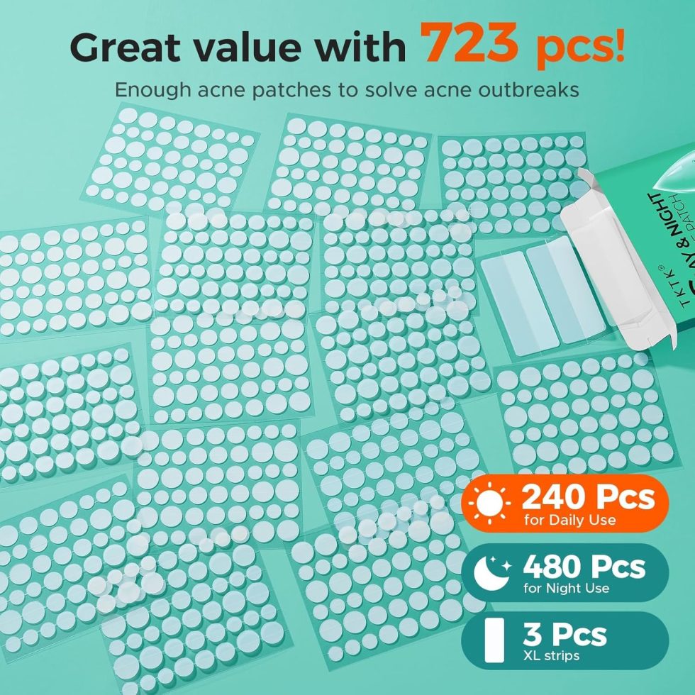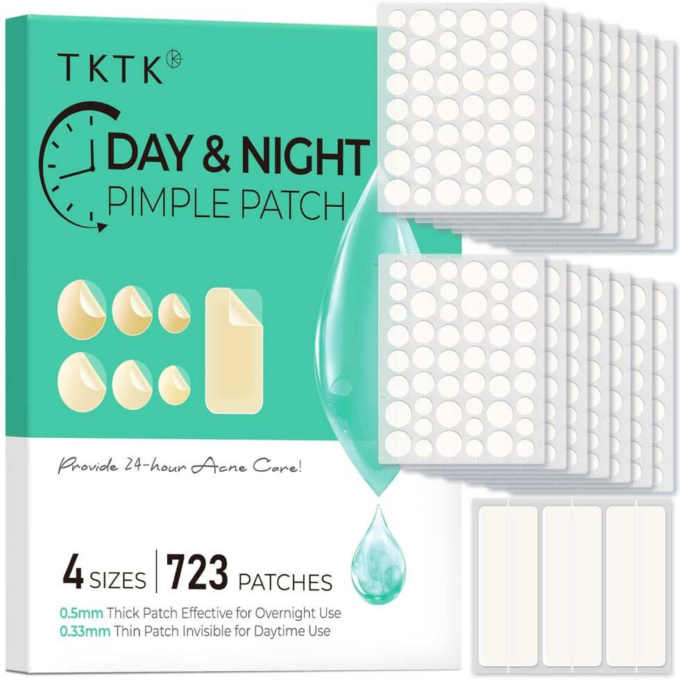 TKTK Day and Night Pimple Patches for Face, 723 Patches 4 Size Acne Patches