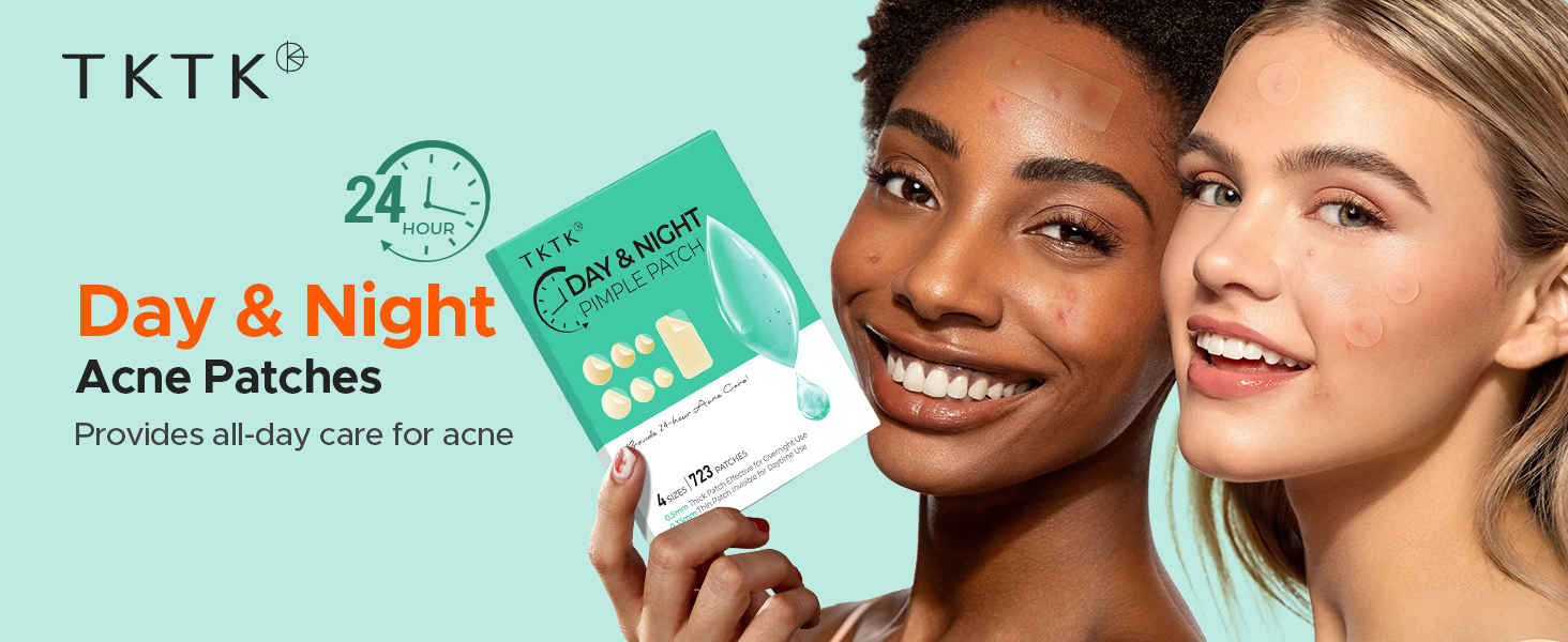 - All-day Use: Daytime acne patches stays discreet under makeup. Overnight pimple patches works intensely on blemishes. TKTK pimple patches are your go-to solution for day and night acne patches care