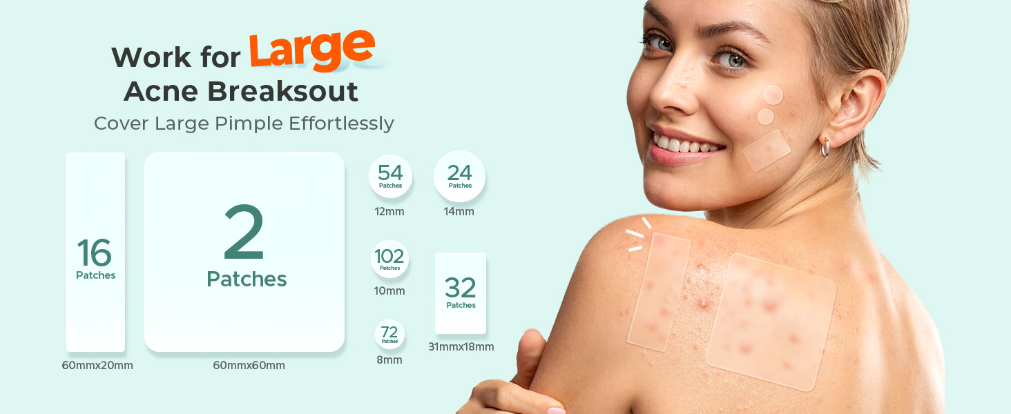 - Perfect for Large Breakouts: including 50 pcs of XL hydrocolloid patches, TKTK acne patches are ideal for large acne areas like the back, chest, or forehead. No more hassle of using multiple small patches