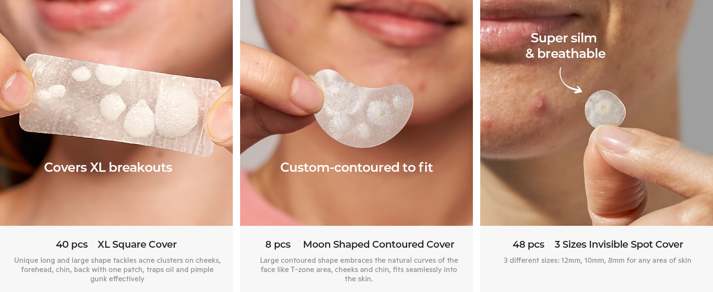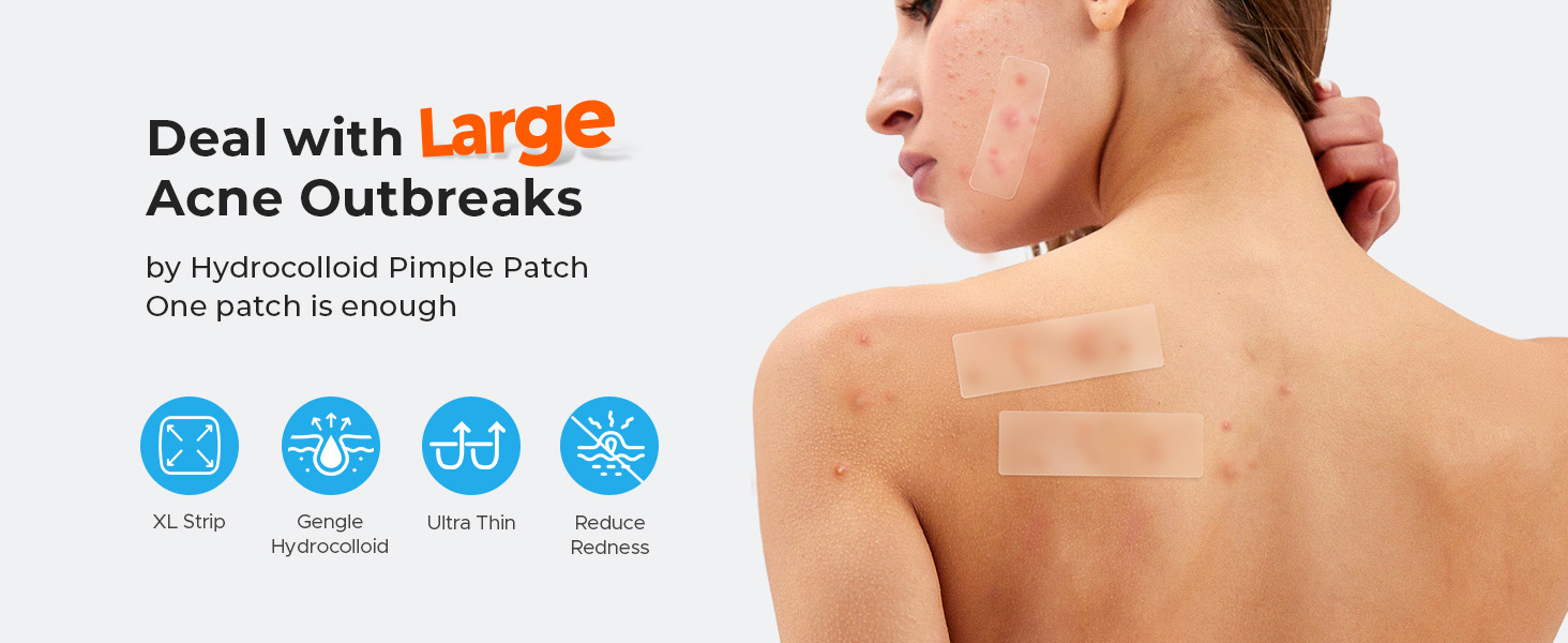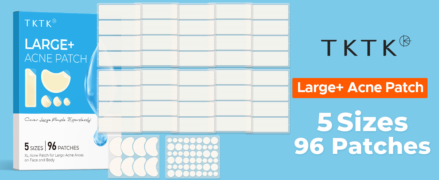 - Ideal for Large Zit Outbreaks: TKTK provides you with a sufficient quantity of larger acne patches compared to others. The large hydrocolloid acne patches are great for when you have large breakouts on your face or body instead of using a million of individual small blemish patches